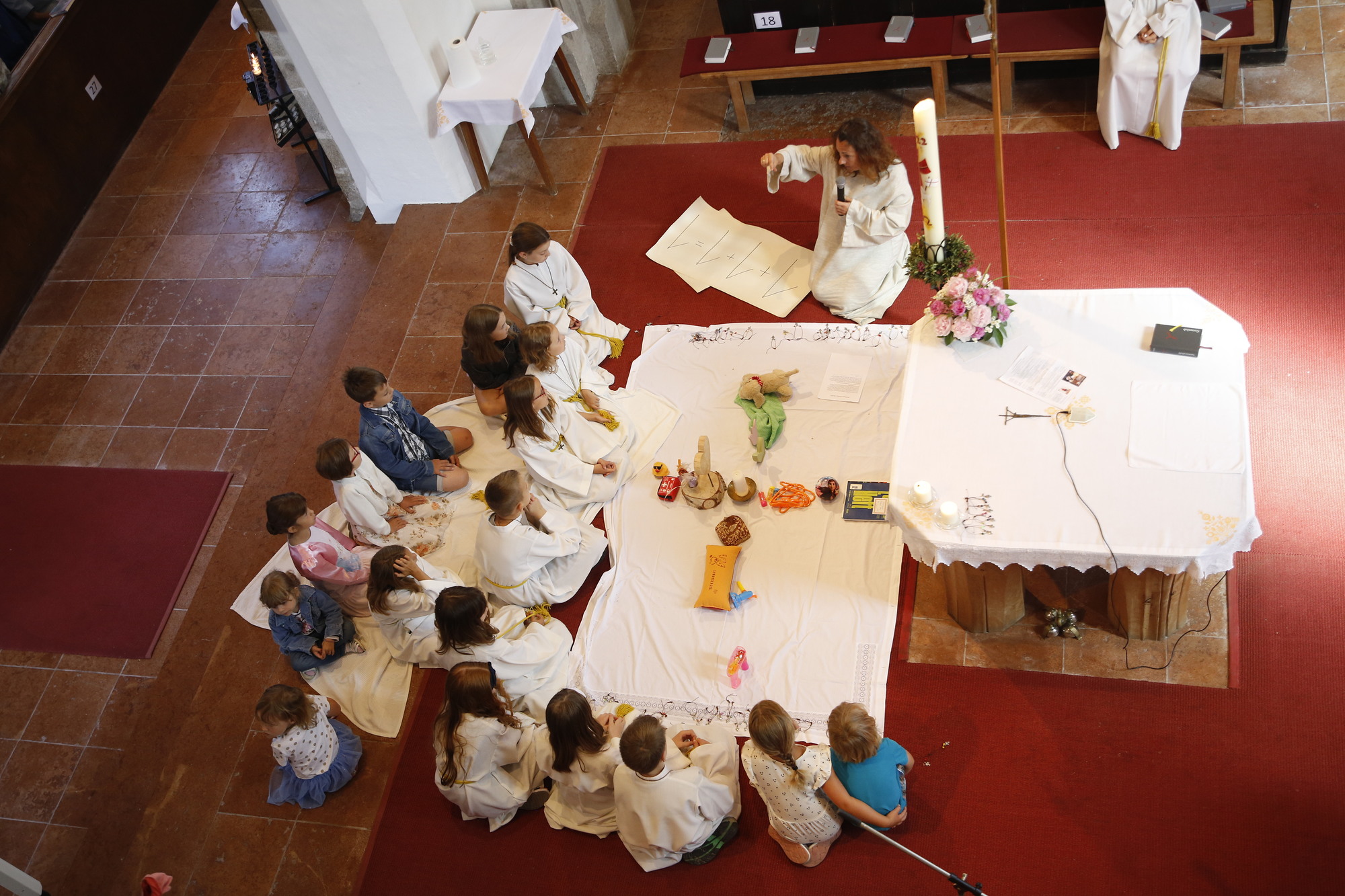 Beim Familiengottesdienst zum Dreifaltigkeitssonntag konnten die anwesenden Kinder durch verschiedene Alltagsgegenstände Gott als einem Gott in drei Personen auf die Spur kommen.