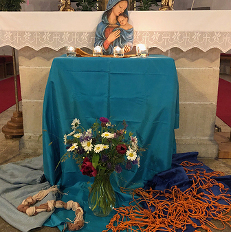 Im Monat Mai gedenken wir Maria. Sie ist Mama von Jesus und Schutzmantelmadonna. Unter ihrem blauen Umhang bietet sie allen, die sie brauchen, Sicherheit - Armen, Kranken, Alten und Jungen.