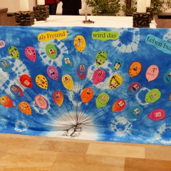 Vorstellungsgottesdienst der Erstkommunionkinder Thema; Mit Jesus wird das Leben bunt! Am 10. März wurden die Kinder der dritten Klassen der Volkssschule beim Gottesdienst vorgestellt. zu den Bildern: Vorstellungsgottesdienst der Erstkommunionkinder