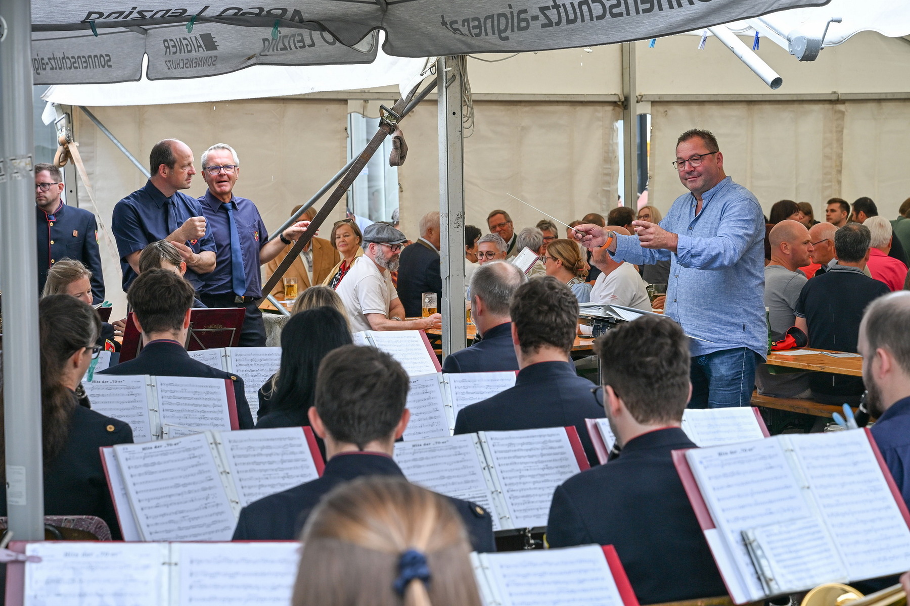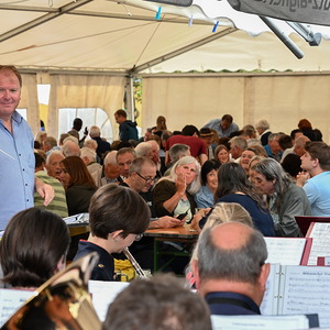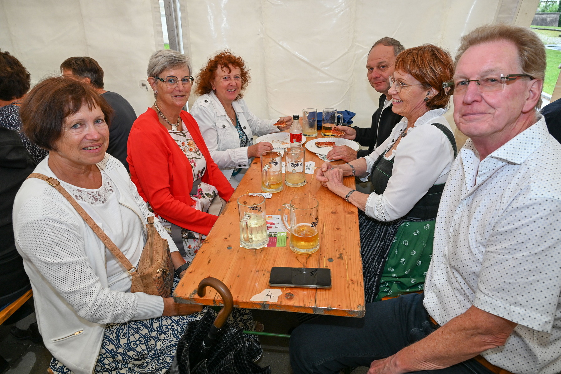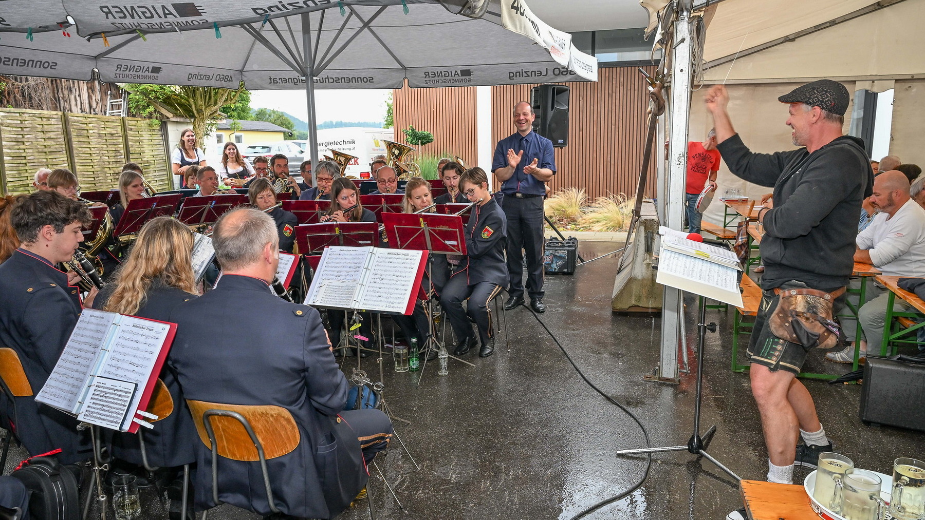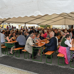 Bei diesem Frühschoppen auf dem Kirchenplatz, der vorsorglich vom Oberthalheimer Organisationsteam schon "überdacht" wurde, kam der Feiergedanke nicht zu kurz und wurde von der Marktmusik Timelkam mit flotten Klängen umrahmt.