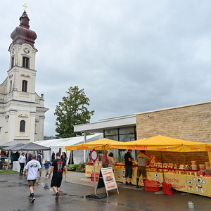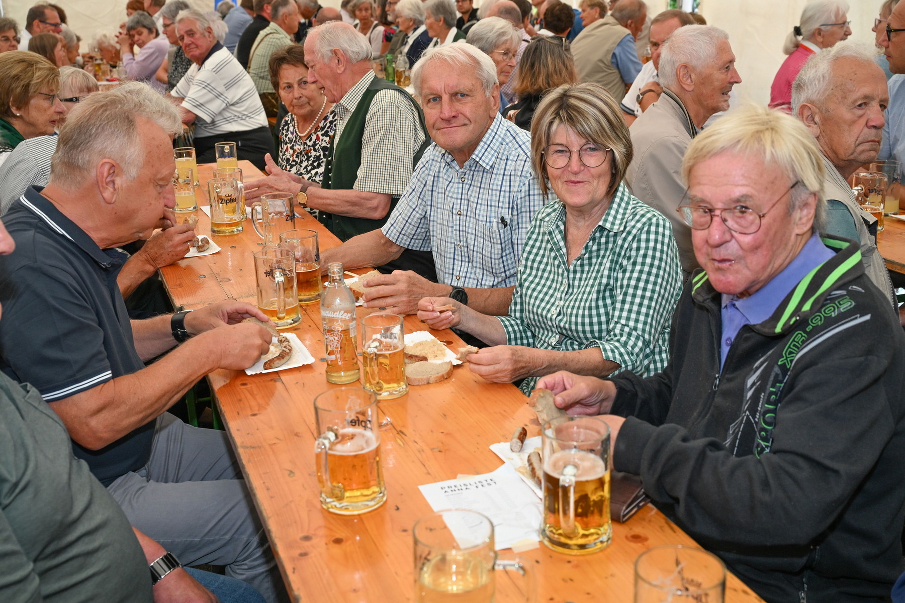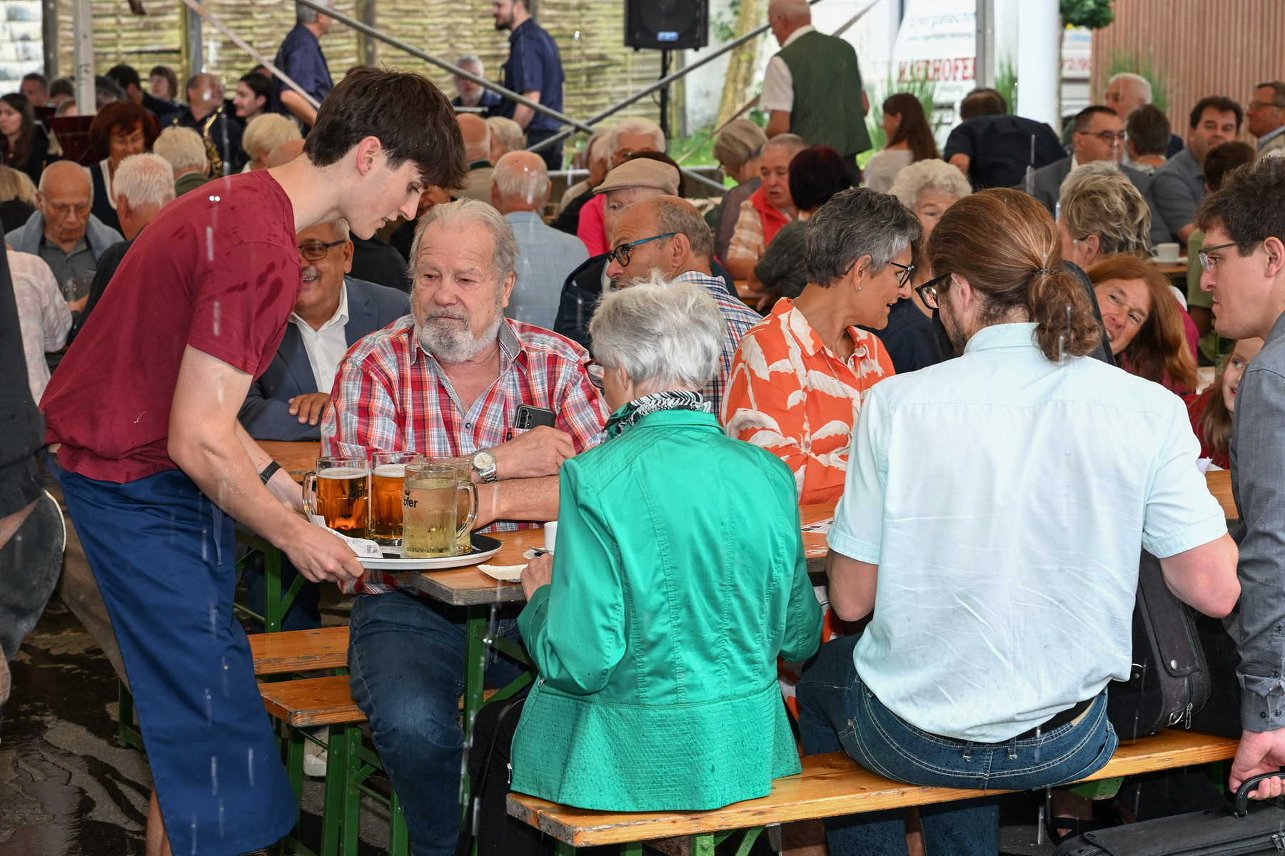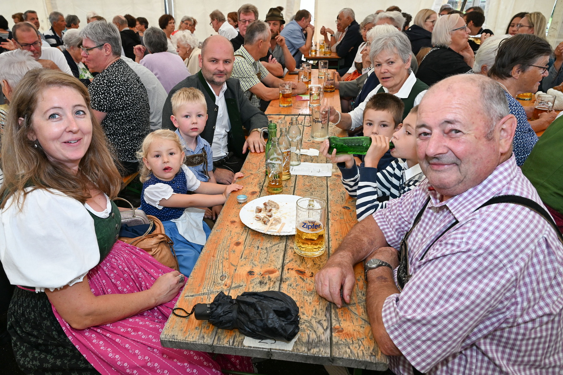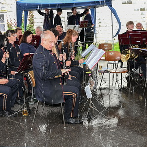 Bei diesem Frühschoppen auf dem Kirchenplatz, der vorsorglich vom Oberthalheimer Organisationsteam schon "überdacht" wurde, kam der Feiergedanke nicht zu kurz und wurde von der Marktmusik Timelkam mit flotten Klängen umrahmt.