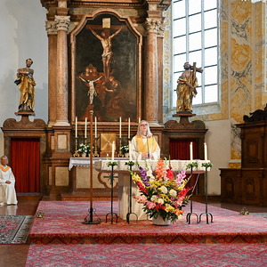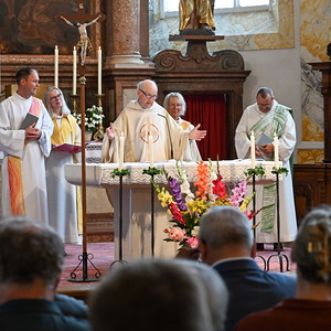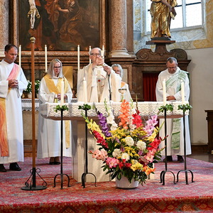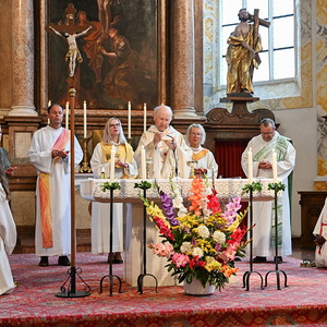Immer wieder gerne kommt auch unser ehemaliger Pfarrer Franz Kniewasser nach Timelkam, und so feierte er die Festmesse als Zelebrant mit Sabine Kranzinger und den Diakonen Bernhard Pfusterer und Herbert Seiringer und war beim anschließenden Frühschoppen ein gern gesehener Gesprächspartner.