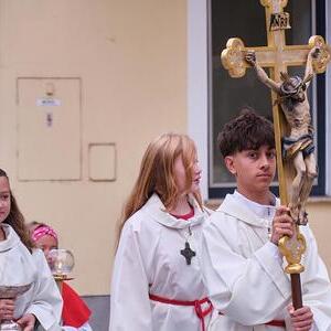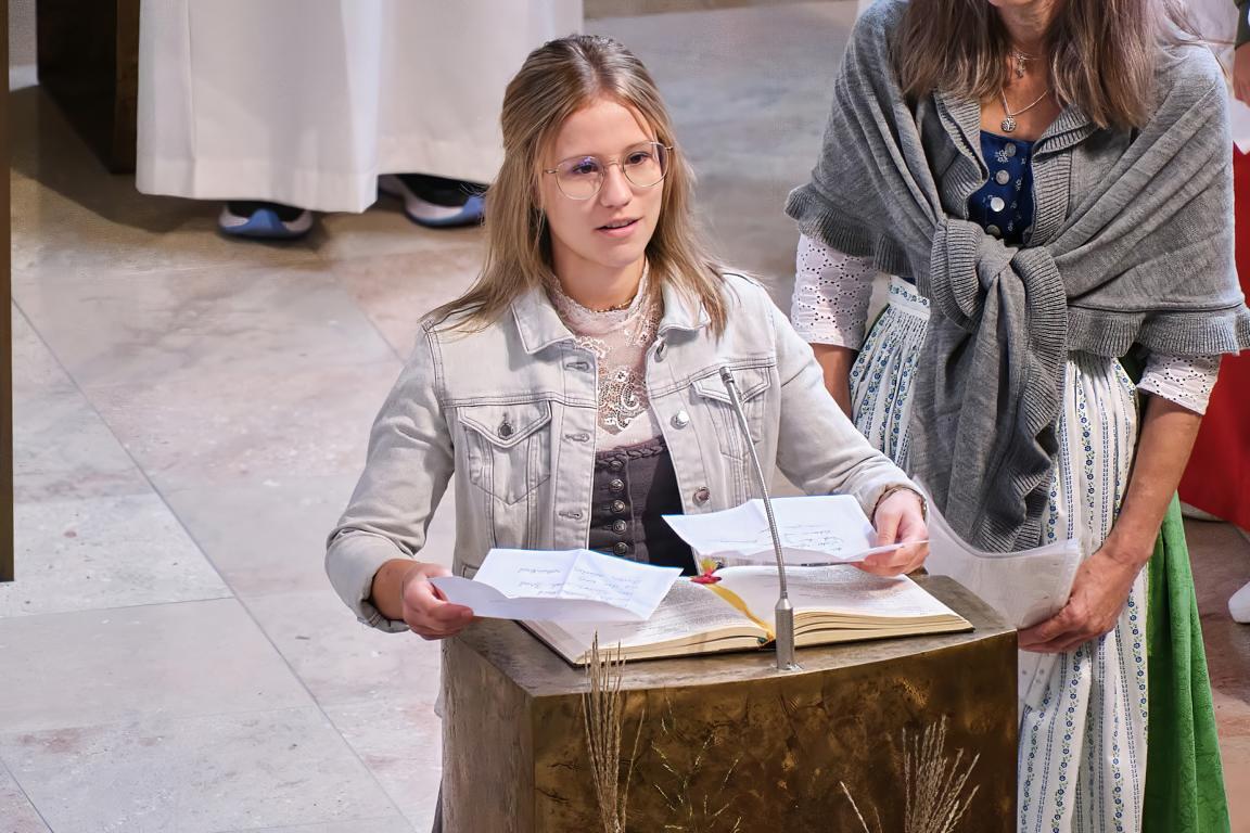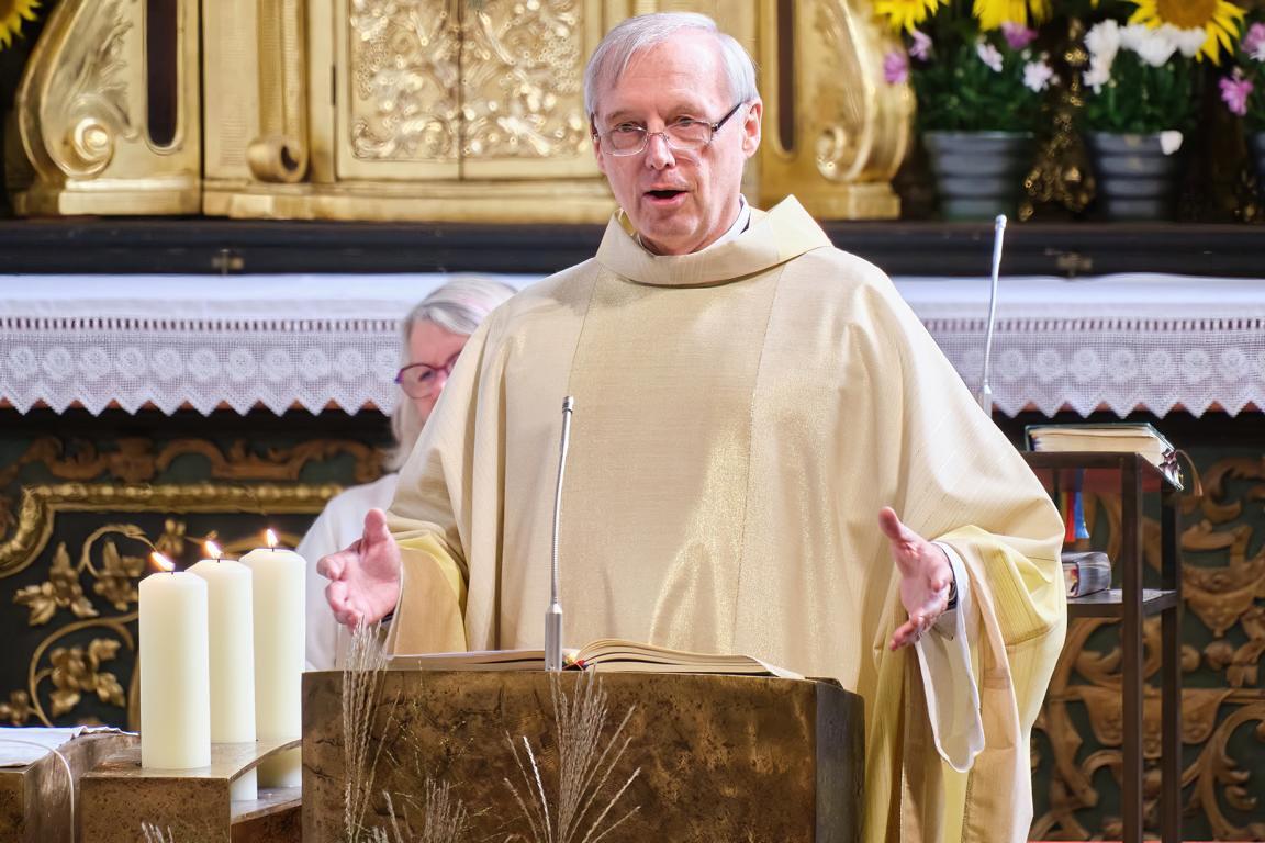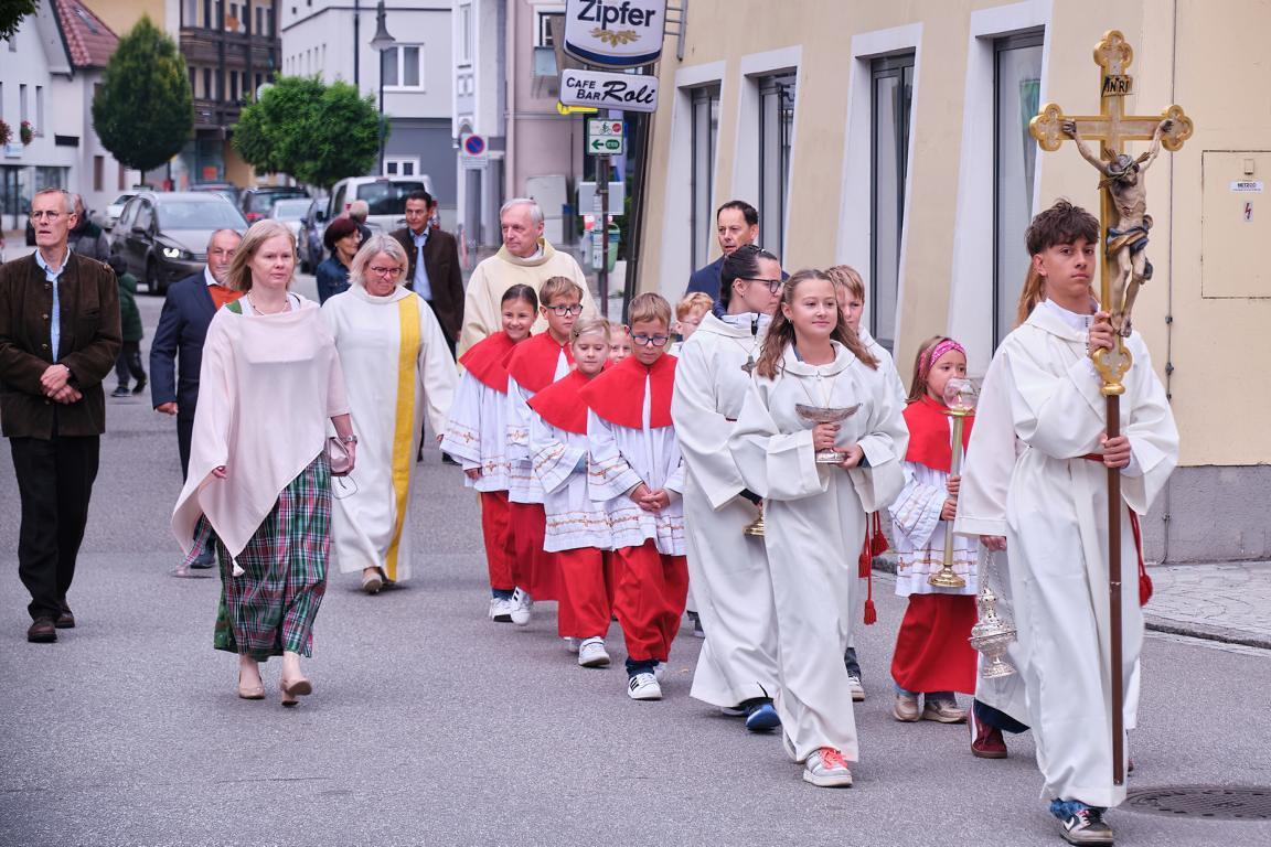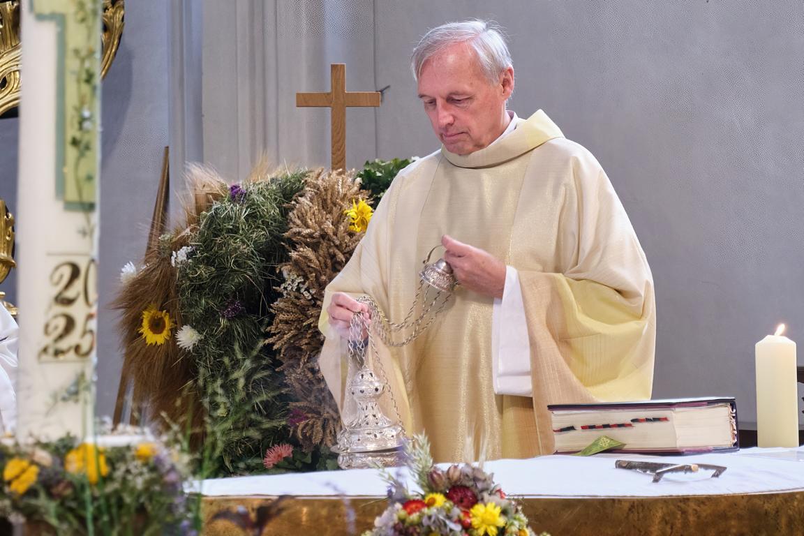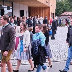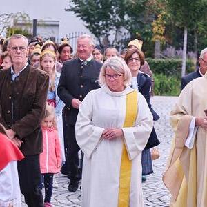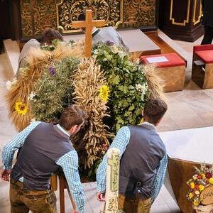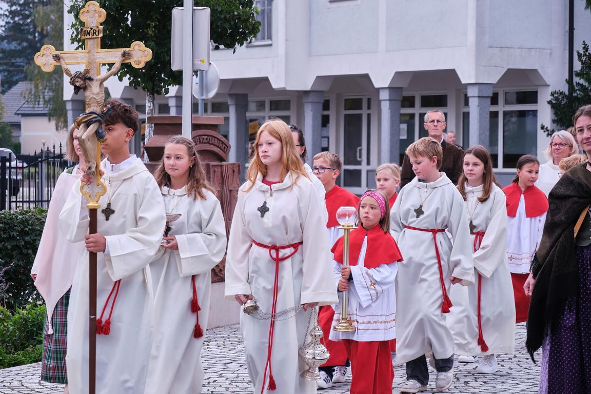 Am letzten Sonntag im September feierte die Pfarrgemeinde das Erntedankfest. Beginn war beim Gemeindeamt, wo Seelsorgeverantwortliche Irmgard Raffetzeder alle  sehr herzlich zum Fest begrüßte und Pfarrer Johann Greinegger die Erntekrone segnete, die von der Landjugend so schön gebunden wurde. Anschließend geleitete die Marktmusikkapelle den Festzug mit den Prangerschützen, den Goldhaubenfrauen, der Landjugend und den Erstkommunionkindern, Vertretern des PGRs und der politischen Gemeinde und ganz vielen Mitfeiernden in die Pfarrkirche zum Festgottesdienst mit unserem Kirchenchor. In der Predigt führte Pfarrer Greinegger aus, warum wir dreifachen Grund zum Danken haben: Für unsere tägliche Versorgung mit Lebensmittel, die uns in solcher Fülle zur Verfügung stehen, wie kaum einer Generation vor uns, für unsere Mitmenschen und alles, was wir durch sie erfahren dürfen, und für die Begegnung mit Gott am Altar in der Mitte unserer Pfarrkirche.