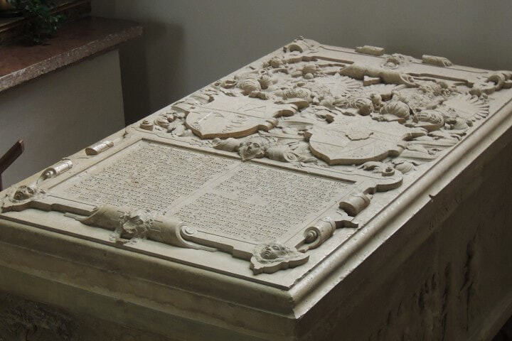 In der evangelischen Kirche gibt es noch Reste seines Grabsteins zu sehen.