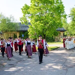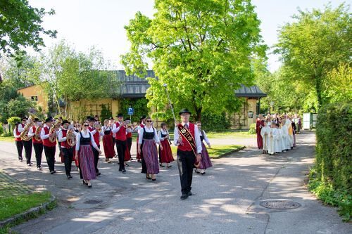 Bei strahlendem Wetter zogen die jubilierenden Paare - gemeinsam mit dem liturgischen Personal und den Goldhaubenfrauen - vom Pfarrplatz in Schönering zum feierlichen Dankgottesdienst in die Pfarrkirche ein. Musikalisch begleitet wurde der Festzug dankenswerter Weise wieder vom Musikverein Schönering.