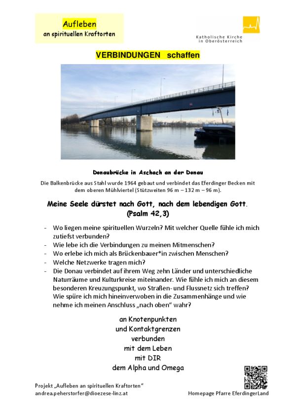 Bei der Donaubrücke in Aschach spüre ich meinem Eingebundensein, meiner Verbindung zu meinen Mitmenschen und meinem "Draht nach oben" nach.