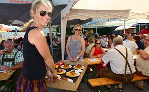 Nach dem Festgottesdienst am 15. August 2019 in der Stadtpfarrkirche und der Kräutersegnung gab es am Kirchenplatz einen Frühschoppen für die zahlreichen BesucherInnen.